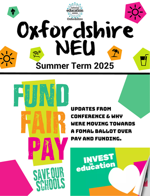 OxfordshireNEUSummer Term 2025Updates fromConference & whywere moving towardsa fomal ballot overpay and funding.